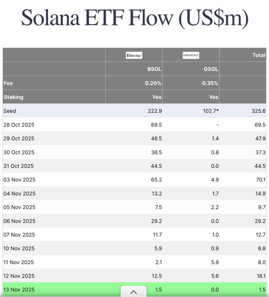 The submission follows an unabating drive towards crypto ETFs, even as the US government is shut. Solana is one of the crypto assets that have received specific attention. According to SoSoValue data, inflows into the spot Solana fund have increased for 13 consecutive days. Thursday inflows amounted to $1.49 million, and the Bitwise fund BSOL was at the top of the day.